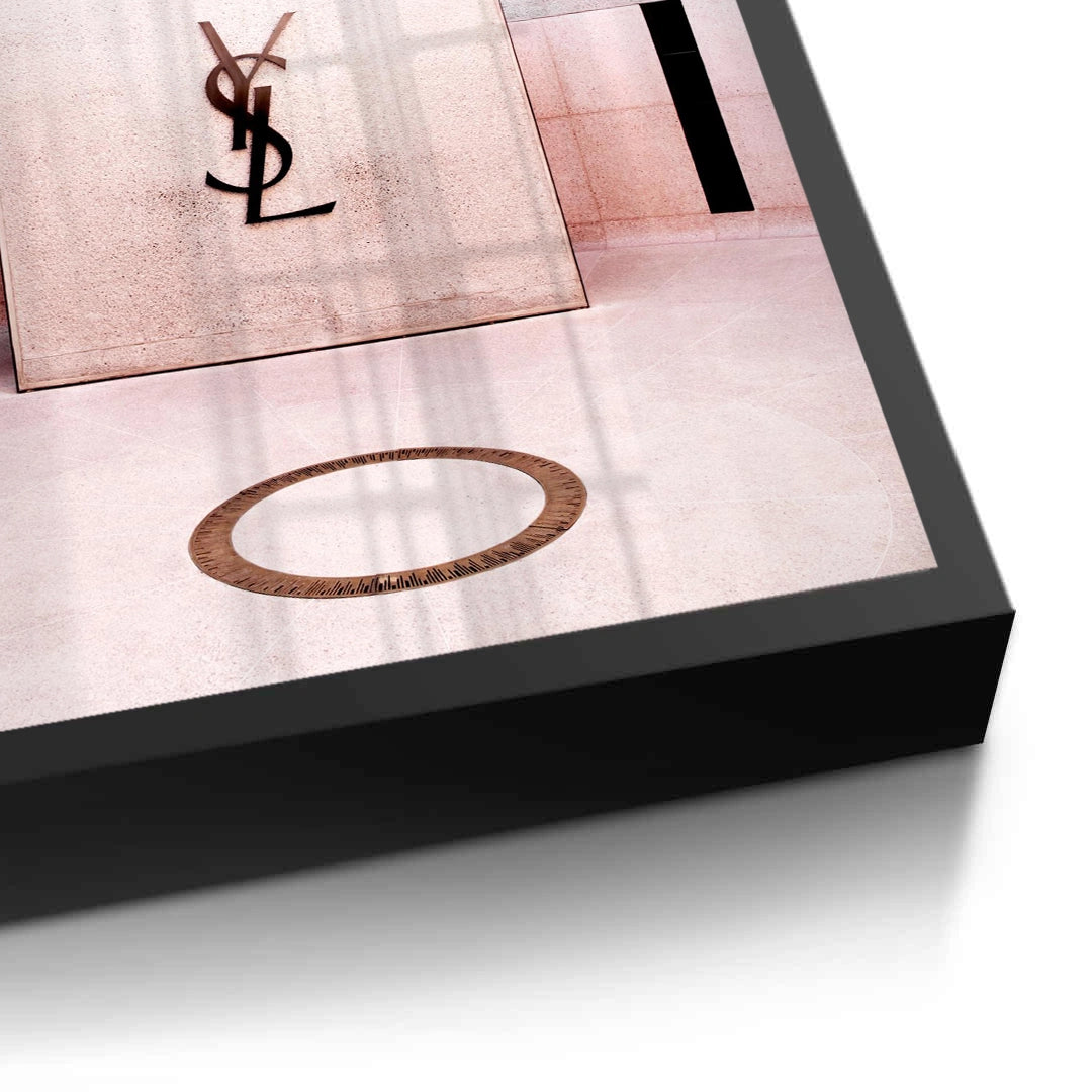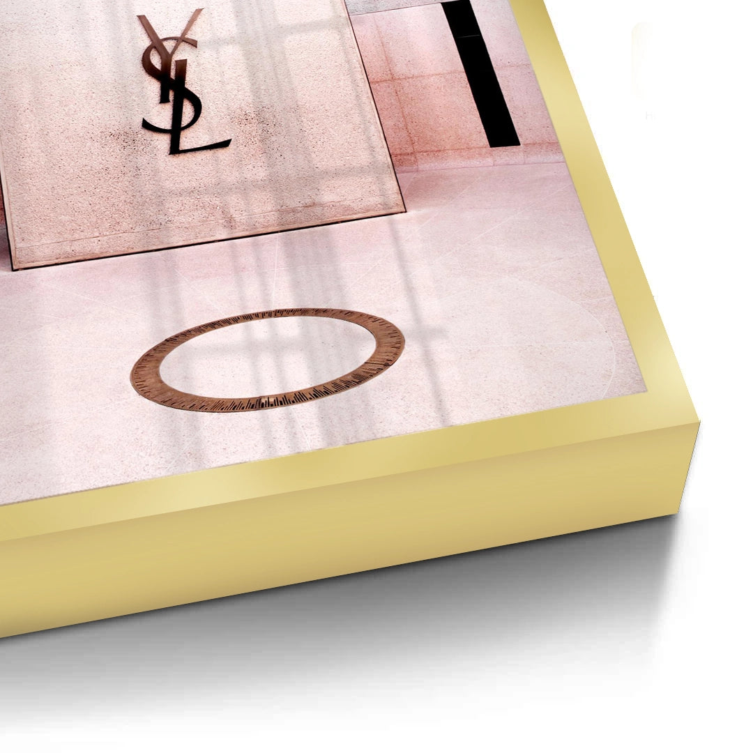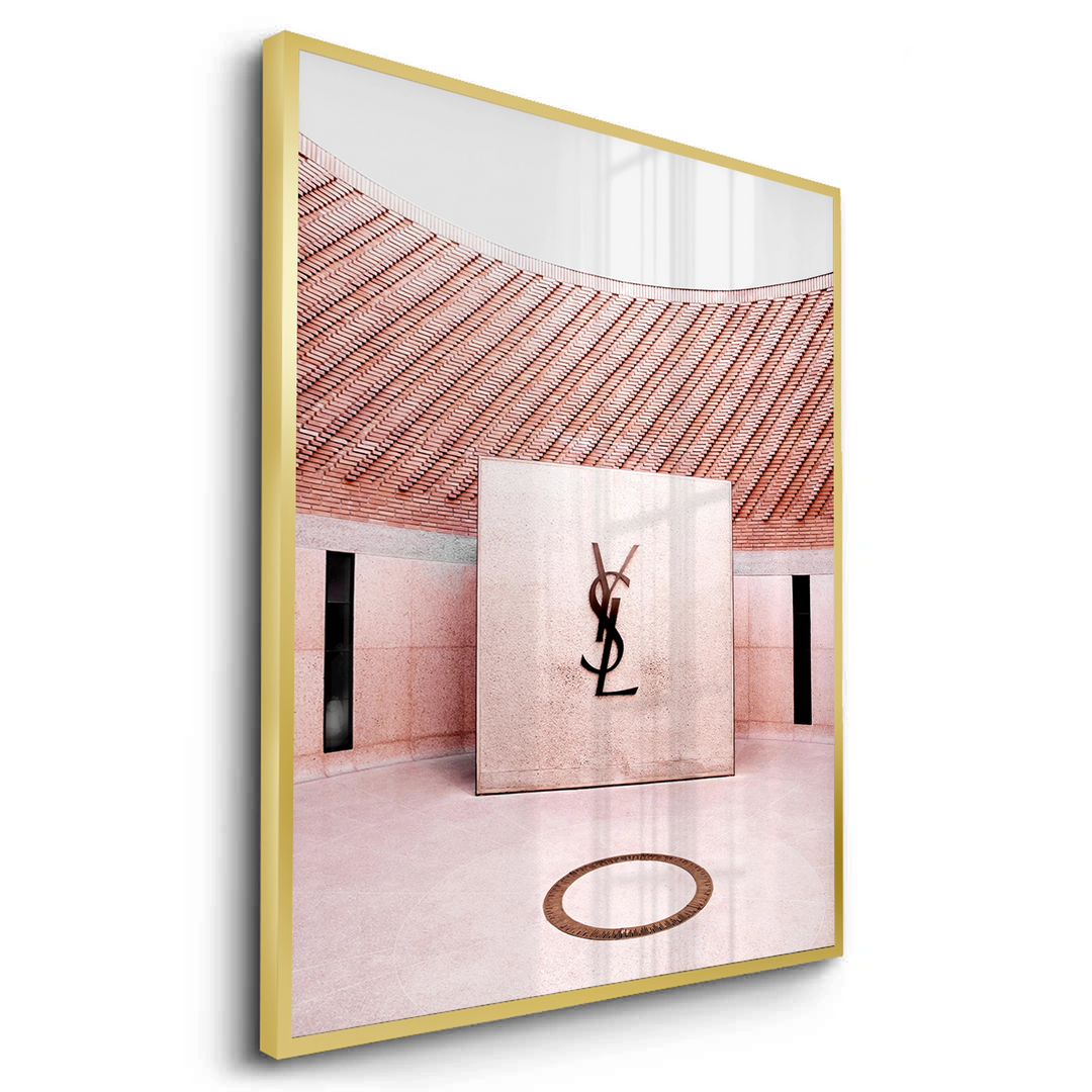 Celebrate the intersection of haute couture and desert design with the YSL Marrakech Courtyard art print. This sophisticated piece captures the iconic circular brickwork and the bold YSL monogram at the heart of Marrakech’s most stylish museum. The warm, sun-kissed palette of dusty rose and terracotta reflects the soul of Morocco, while the clean geometric lines offer a modern, high-fashion aesthetic. Finished with our signature premium vertical texture, this print provides a luxurious tactile depth. It is an exquisite statement piece for a chic dressing room, a high-end fashion boutique, or a stylish modern home in Dubai.